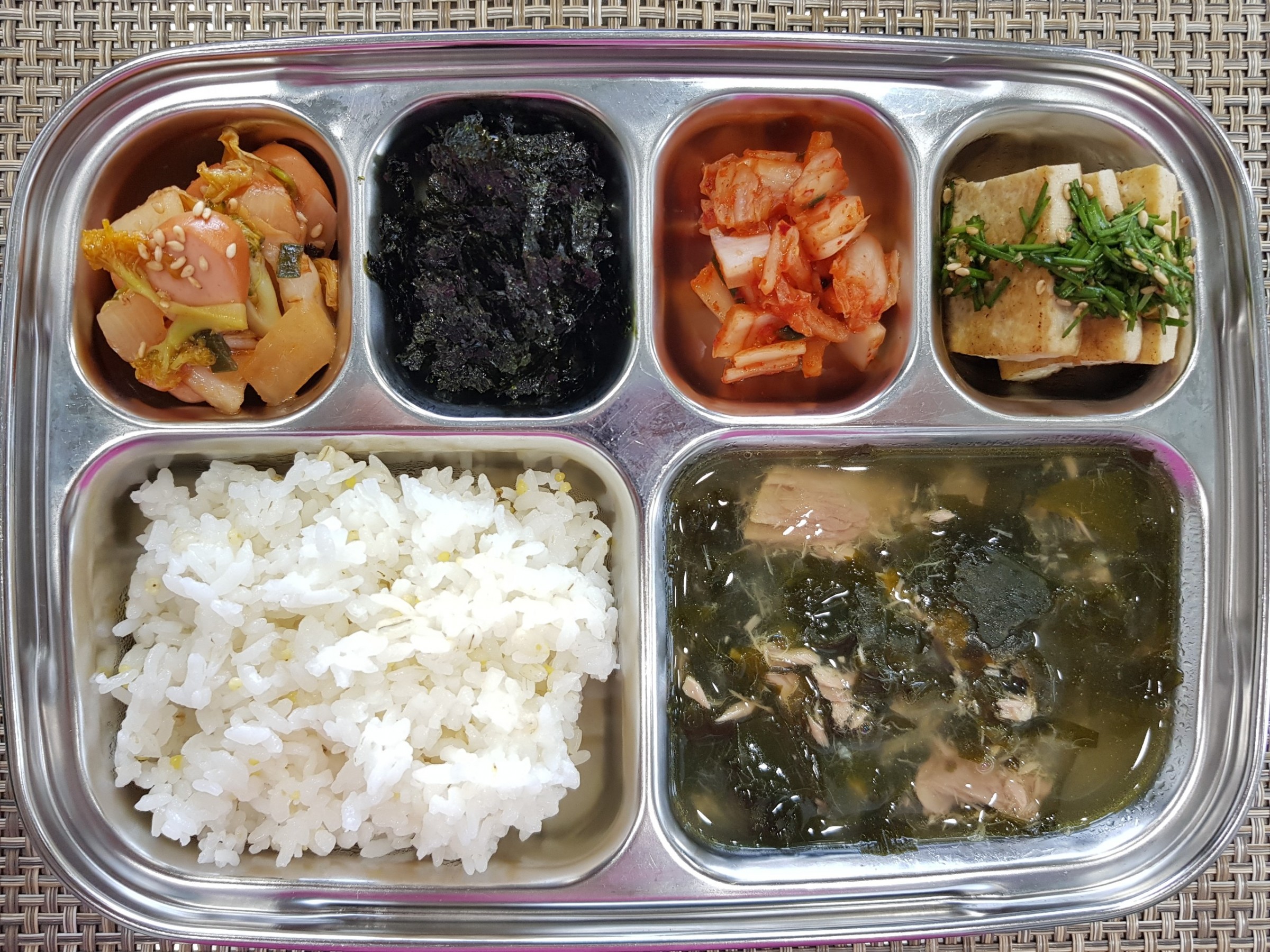 점 심 ~ 잡곡밥, 참치미역국, 두부구이*양념장, 소세지야채볶음, 조미김, 배추김치