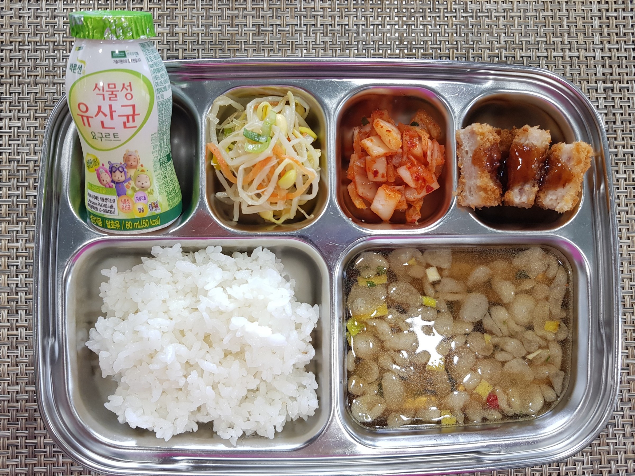 점 심 ~ 흰쌀밥, 우동장국, 순살돈까스*소스, 콩나물무침, 배추김치, 요구르트