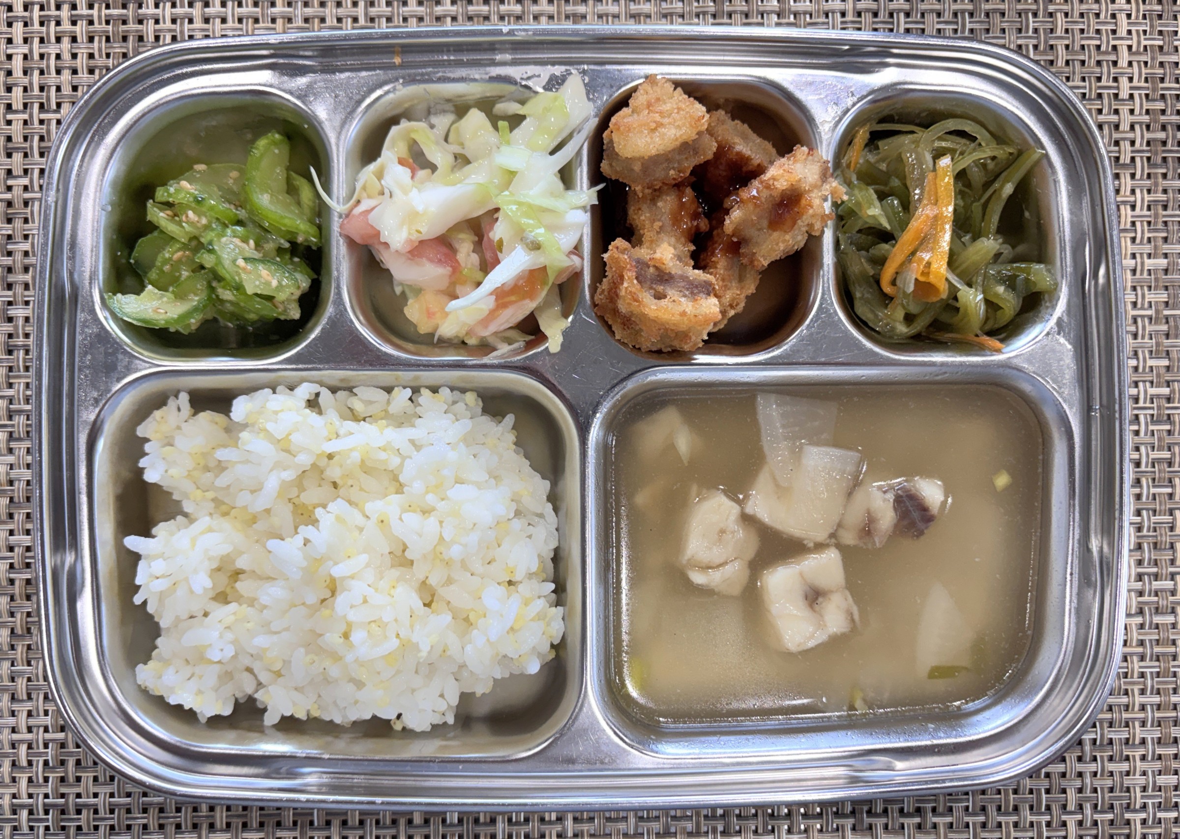 점 심 ~ 차조밥, 동태살무국, 순살돈까스*소스, 오이초무침, 미역줄기볶음, 토마토양배추샐러드