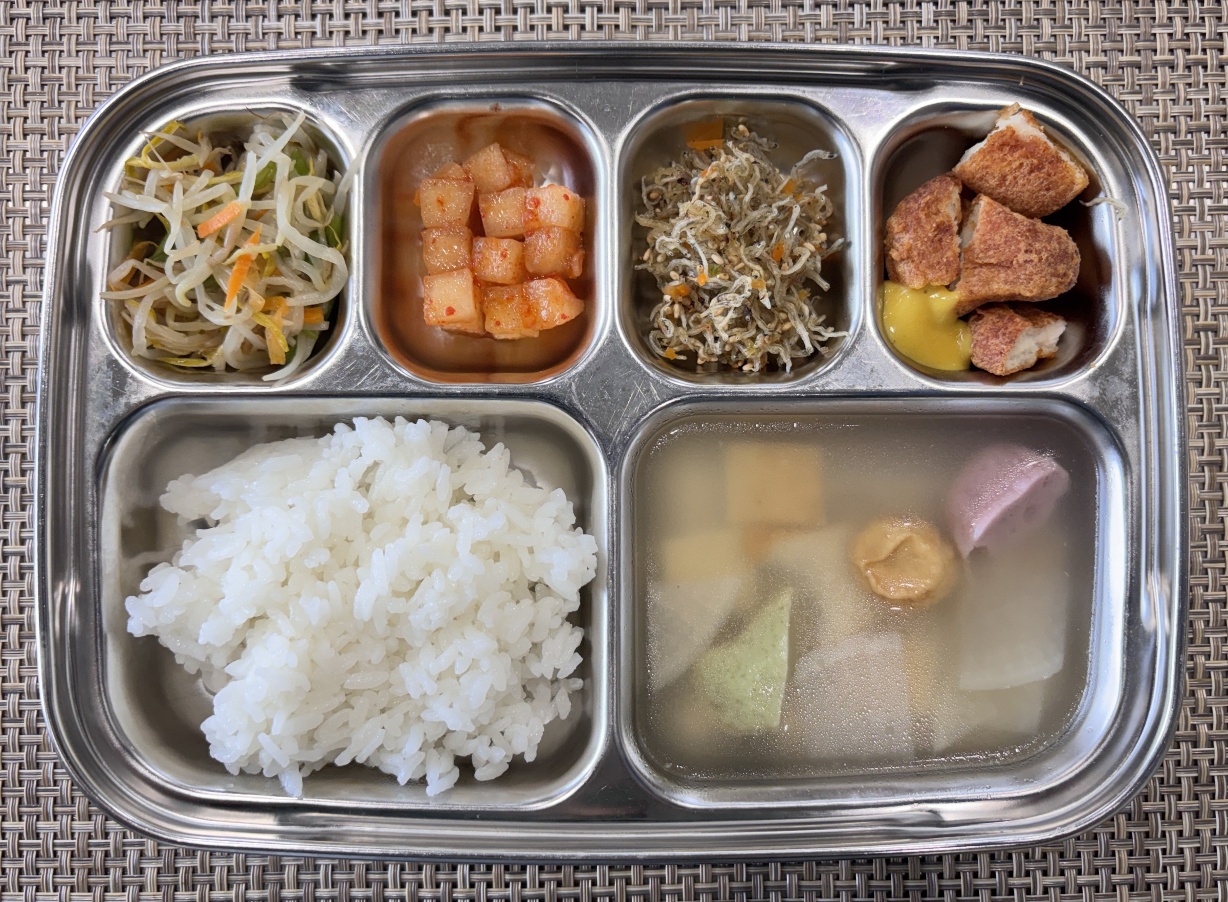 점 심 ~ 흰쌀밥, 모듬어묵국, 치킨너겟*허니머스타드, 지리멸치볶음, 미나리숙주나물, 홍시깍두기