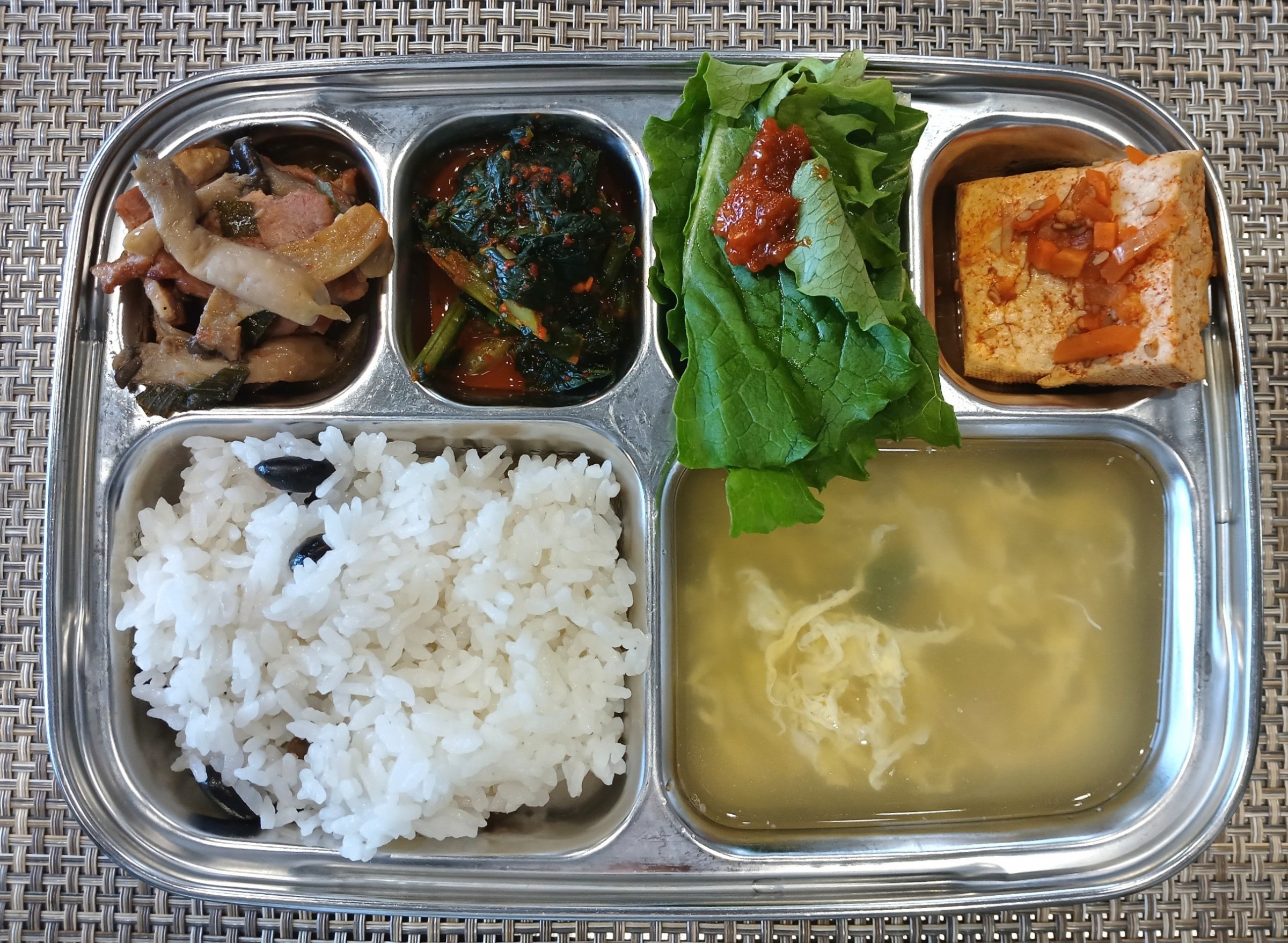 점 심 ~ 검은콩밥, 실파계란국, 훈제오리버섯볶음, 상추쌈*쌈장, 두부조림, 열무김치