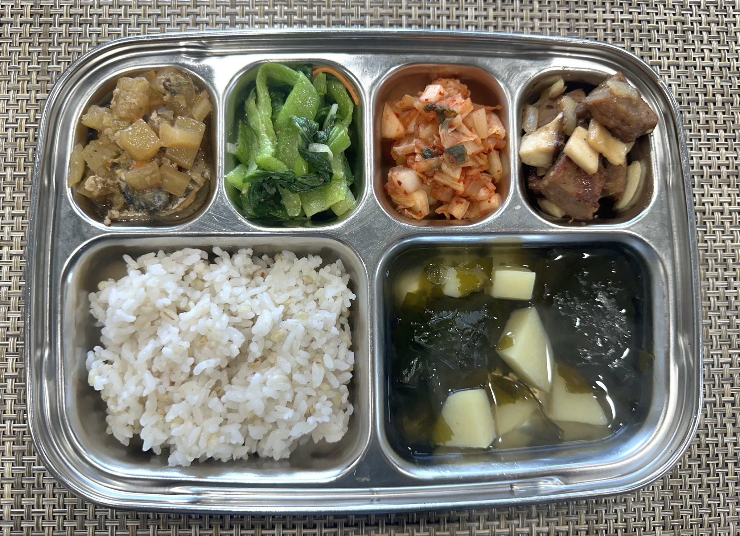 점 심 ~ 혼합잡곡밥, 감자미역국, 순살삼치무조림, 새송이버섯떡갈비구이, 청경채나물, 배추김치