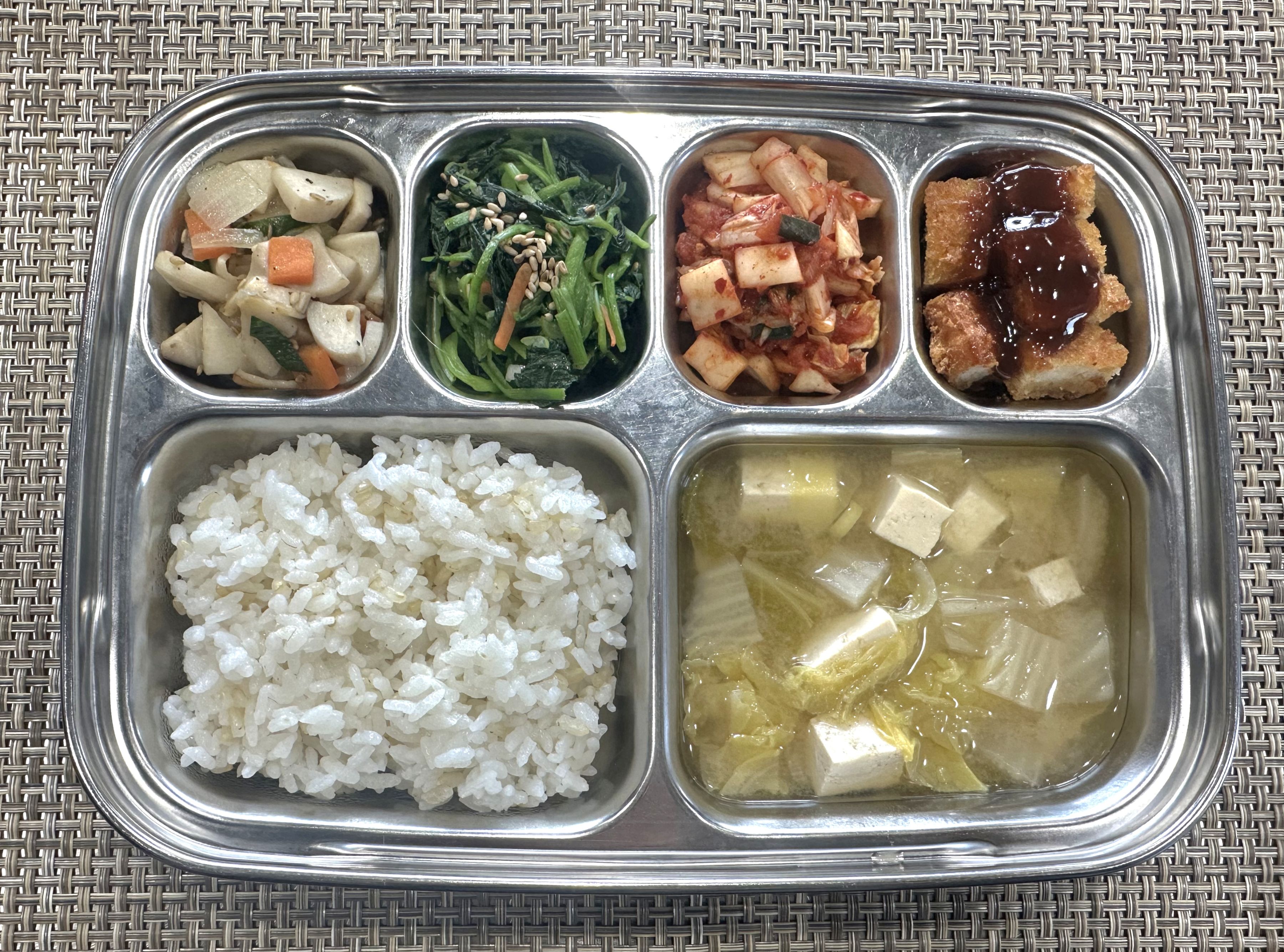 점 심~ 찹쌀밥, 배추두부된장국, 치킨까스*소스, 새송이버섯볶음, 참나물, 배추김치